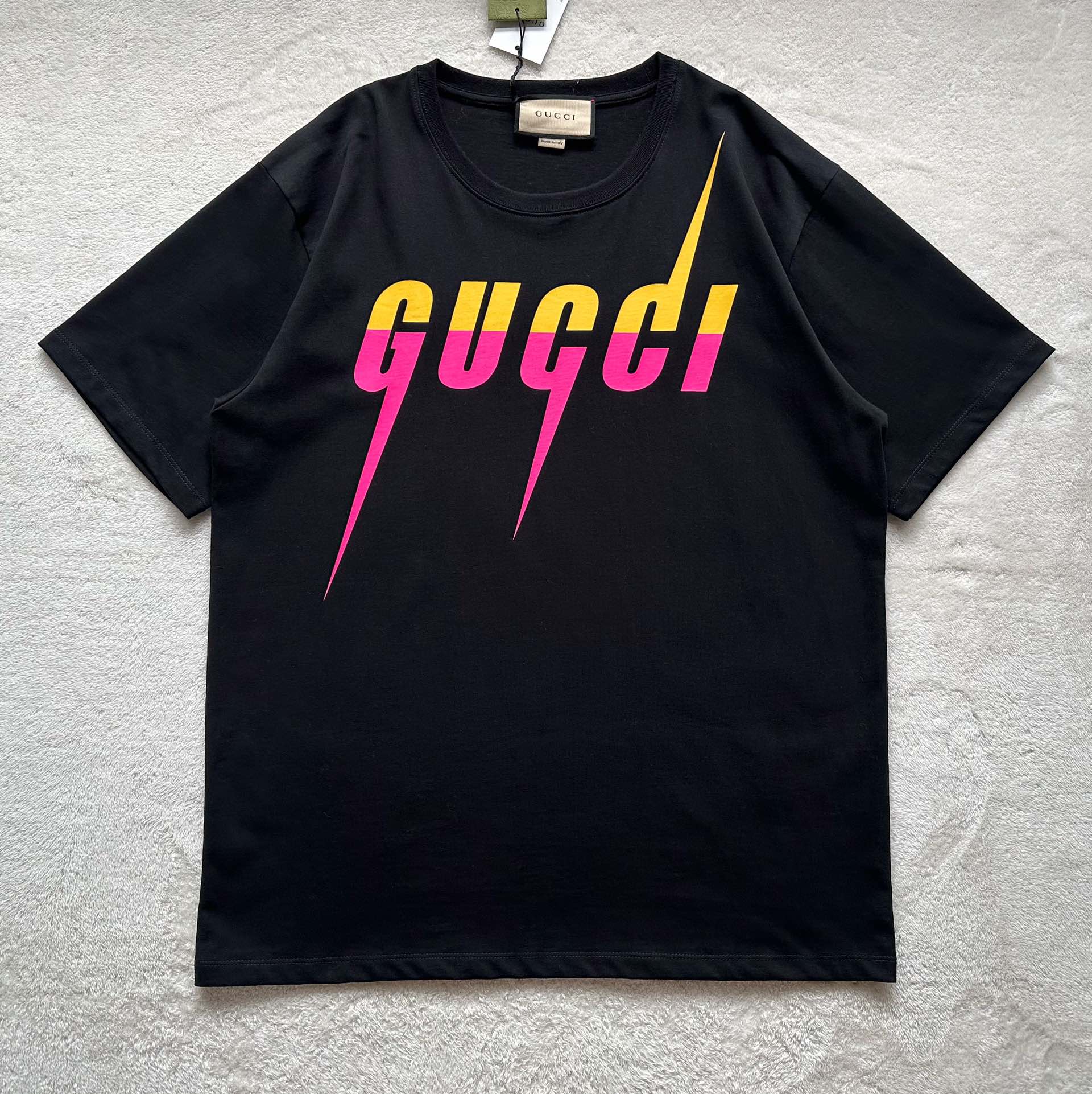 Gucci Contrast Lightning Print Round Neck Short Sleeve