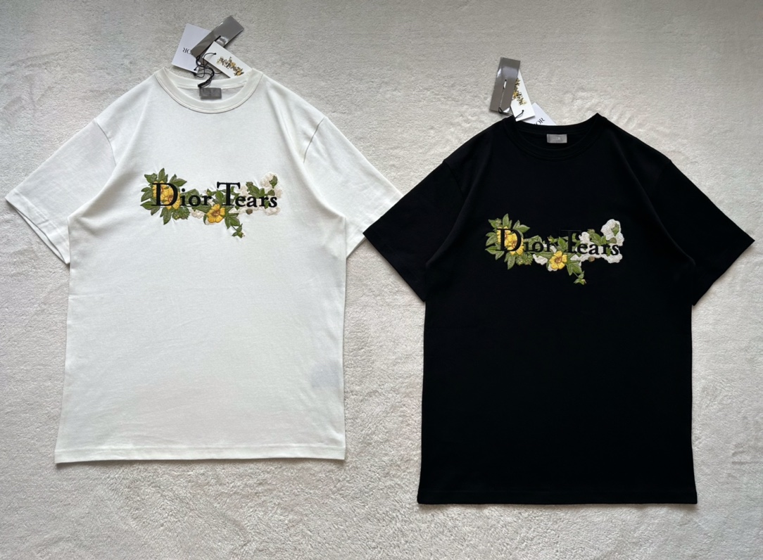 Dior Heavy Industry Floral Embroidery Round Neck Short Sleeve