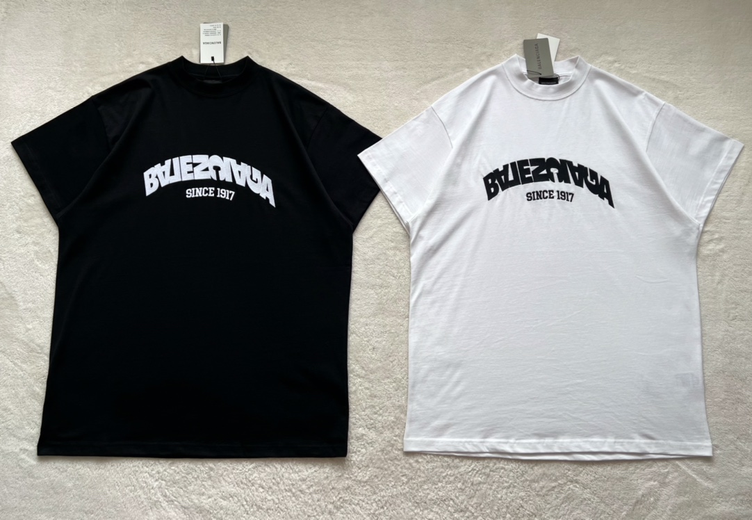 Balenciaga Inverted Letter Embroidered Round Neck Short Sleeve