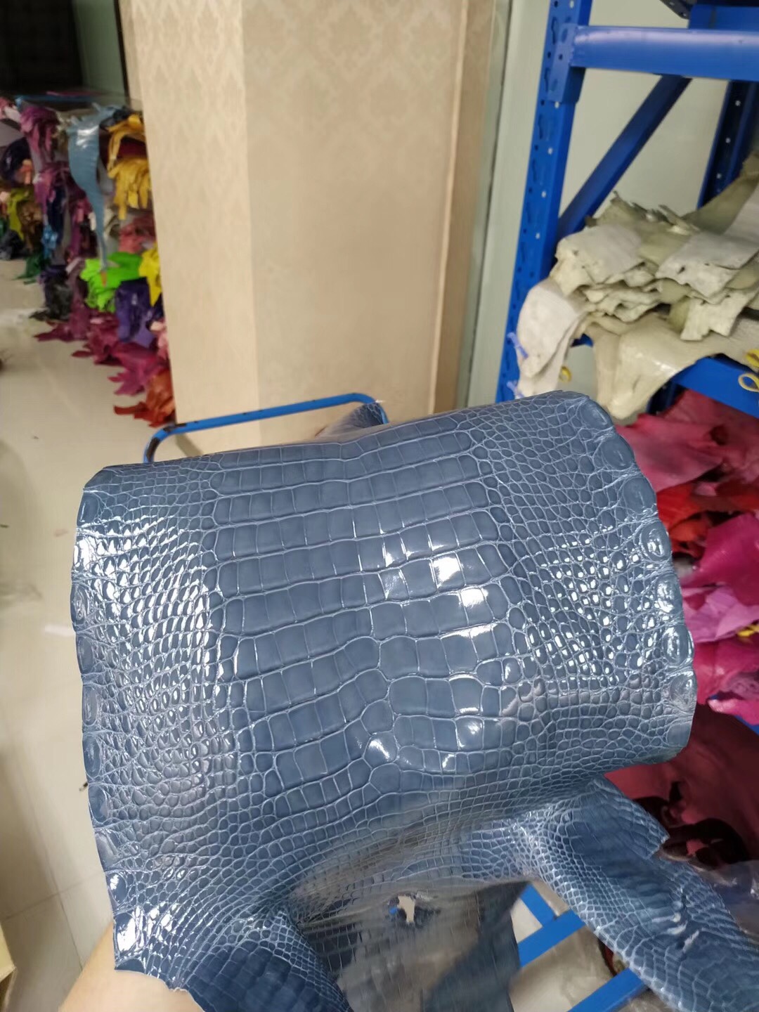 Hermès makes exclusive leather glossy American alligator: storm blue