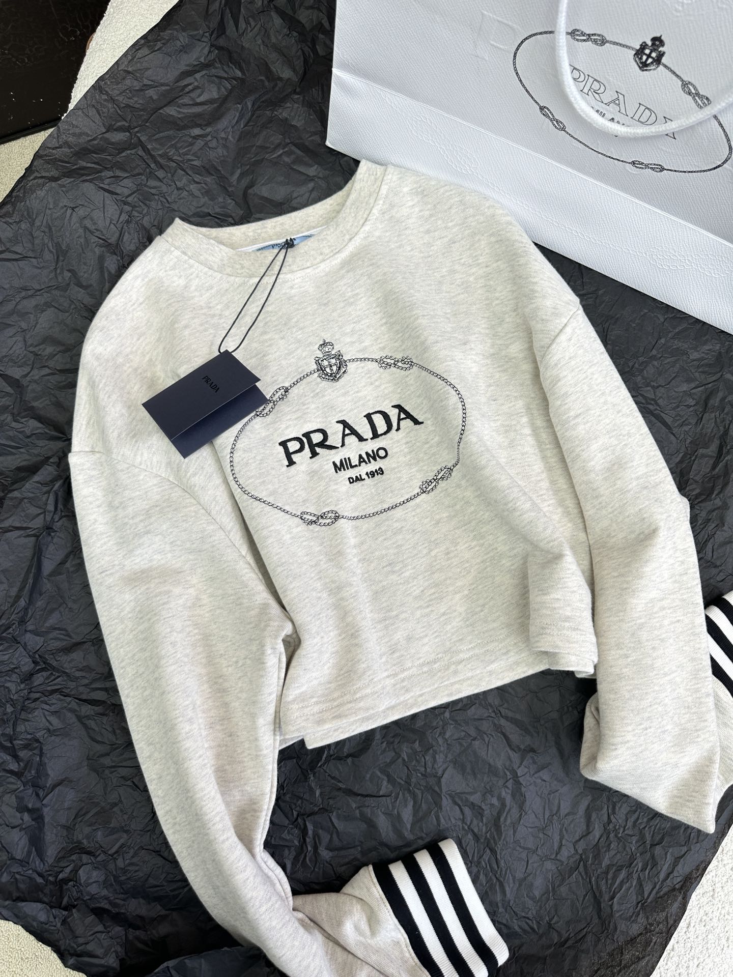 PRADA Letter Embroidered Contrast Rib Cuff Sweater