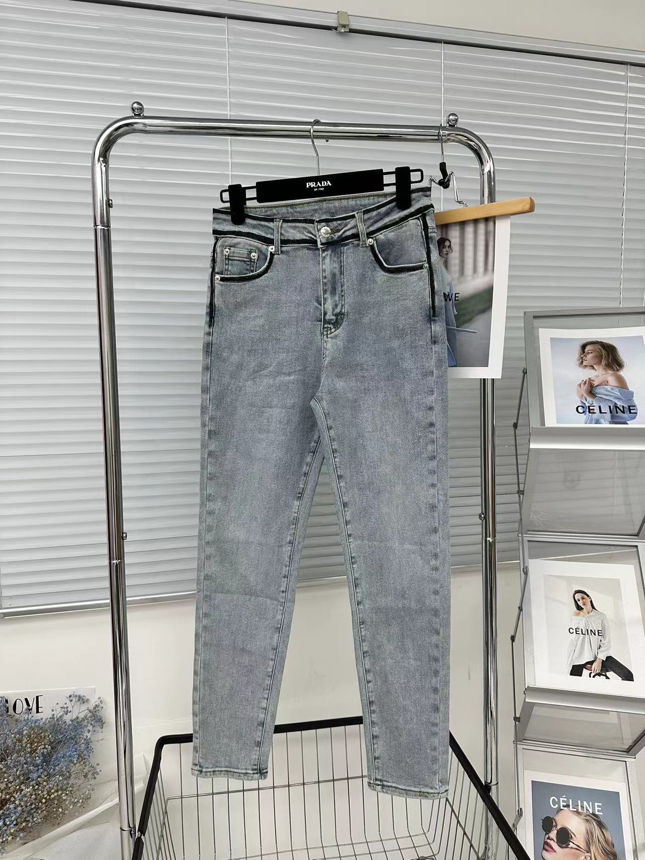 Prada Letter Waistband Hollow Back Pocket Triangle Logo Jeans