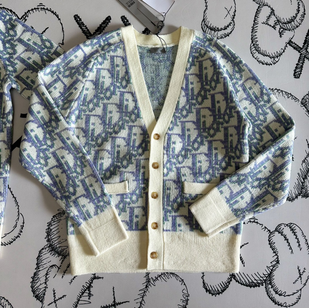 Dior Colorful Old Jacquard Wool Knitted Cardigan