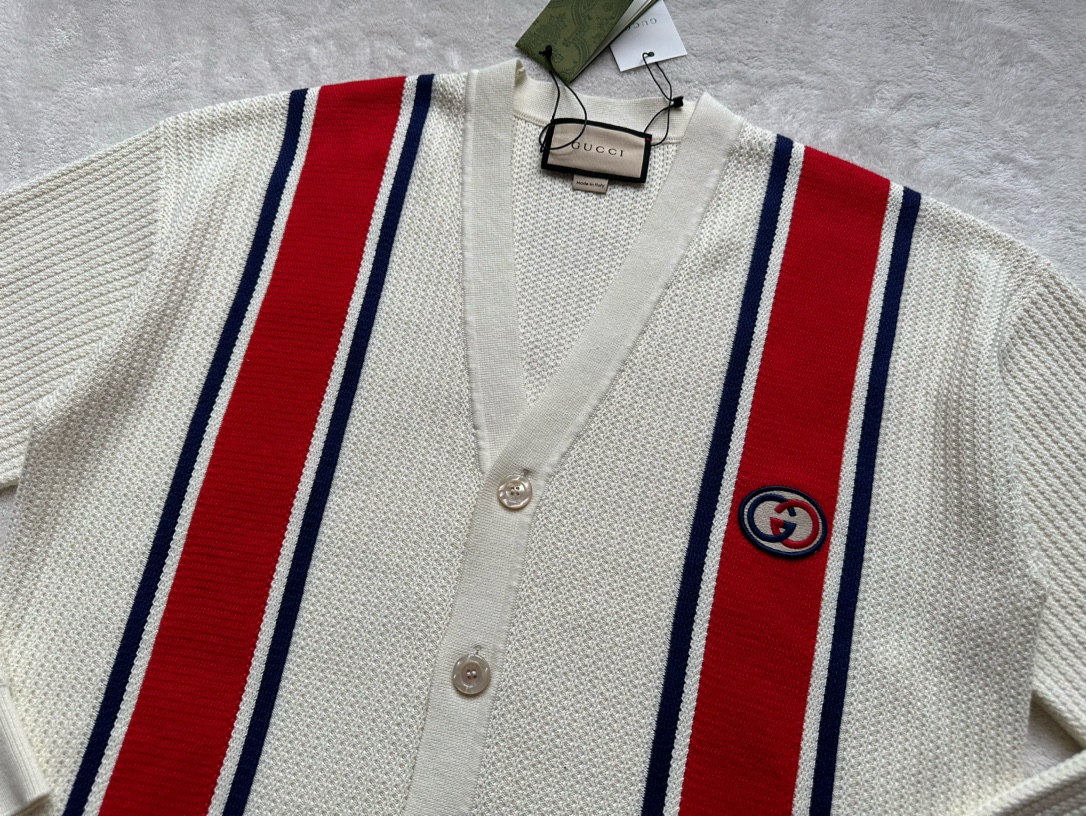 GUCCI contrasting red and blue striped woolen cardigan jacket